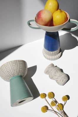 Coupes à fruits et vases, grès et superposition d'émaux - 2023